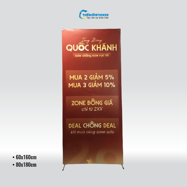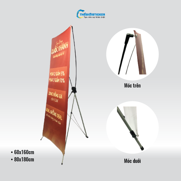 Chất liệu: Chân x tốt, cường lực. Kích thước in: 80x180cm. Chất liệu in treo khi chọn combo: PP trong nhà. Phương án: đóng khoen treo 4 góc. Mục đích: Sử dụng treo quảng cáo 1 mặt, sự kiện gấp, tiết kiệm chi phí. Thời gian bảo hành: 1 tháng. Thời gian đổi trả: 05 ngày.